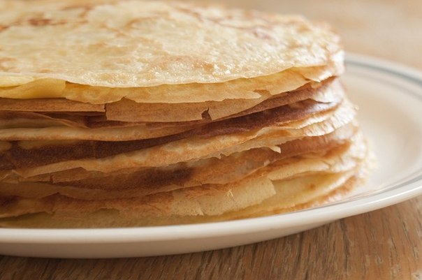 Растопите масло. В отдельной кастрюльке нагрейте молоко, снимите с огня и остудите около 10 минут. Смешайте муку, яйца, сахар, соль и ликер в блендере и взбейте до однородной массы. Влейте молоко и сливочное масло и взбейте тесто снова. Поставьте тесто в холодильник на 6 часов, а лучше на ночь. Обжарьте тонкие блины на сковороде с обеих сторон и выложите на отдельную тарелку.