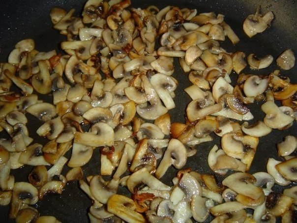 Грибы нарезаем пластинками и обжариваем до золотистого цвета.