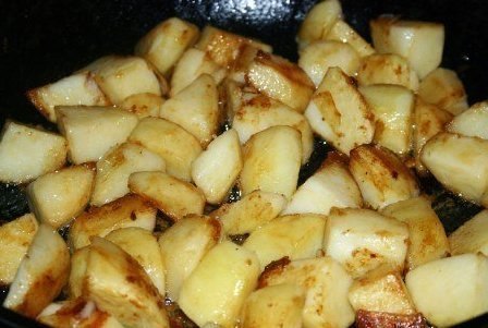 Поджарьте картофель на небольшом количестве масла в течение 15 минут, почти до готовности, не забудьте посолить.