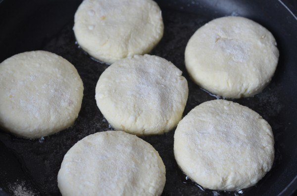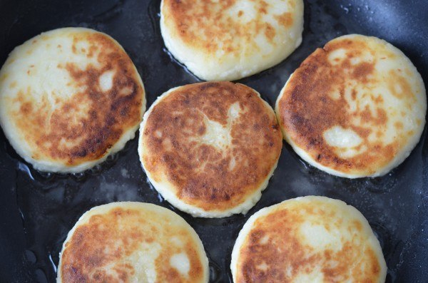 Да, муки надо побольше, а пропекаются они прекрасно из жирного домашнего творога, даже не протираю через дуршлаг — пользуюсь толкушкой с дырочками для картофельного пюре. Никогда не закрываю крышкой, просто обжариваю с двух сторон до золотистой корочки на несильном огне.