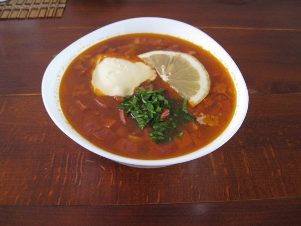 В 70х годах на Невском часто ела солянку с солёным зелёным помидором, ломтиком лимона и много мяса и колбасы. Было дороговато, но вкусно.