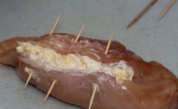 Грудки скрепить в месте разреза зубочистками.