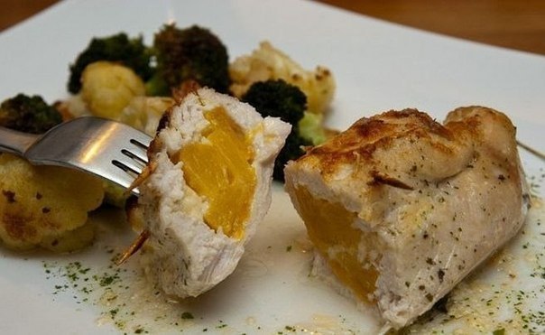 Желательно, чтобы то чем мы фаршируем было хорошо обернуто мясом, поэтому много класть не стоит, так как чем больше начинки — тем больше риск, что начинка вылезет во время выпекания.