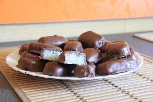 Делала.начинка получилась очень вкусная,но не стала держать форму((( и шоколад у меня не растопился((( брала альпен гольд молочный,а он просто засох((( так обидно было. В итоге разозлилась,и смешала шоколад с начинкой)) навертела круглых конфет,получилось по вкусу как баунти,а по вижу как фереро роше с кокосовой стружкой))) вкуснотаааа