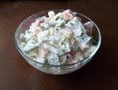 4. Осталось только полить салат заправкой, аккуратно перемешать и посыпать черным перцем.