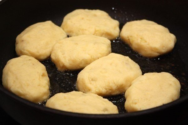 Из получившегося теста лепим котлетки (или круглые биточки) и выкладываем на горячую сковороду с растительным маслом.