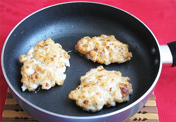 Этап 3.Итак, жарить такие котлетки очень просто. Их совсем не надо формировать, а достаточно просто выложить фарш столовой ложкой на сковороду с разогретым растительным маслом. И жарим их, как оладьи, с двух сторон до румяного цвета.