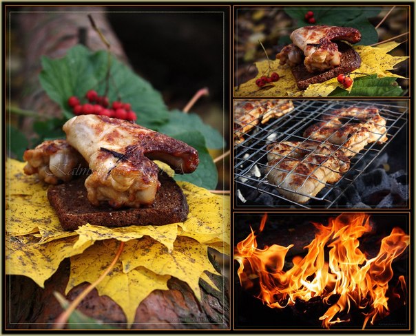 Крылья промыть,замариновать в вышеописанных ингридиентах часов на 16-20 и доводить до готовности на углях.Во время приготовления сделать несколько проколов ножом, для более хрустящей корочки.
