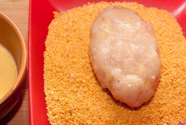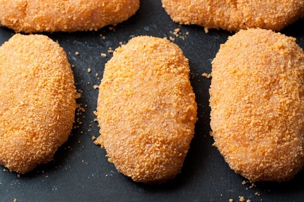 Придайте изделию овальную форму и обмакните сначала в яйцо, затем обваляйте в сухарях со всех сторон.