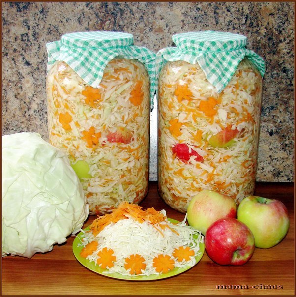 Евгения, яблоки тоже туда, я кладу их на дно тары,а можно перемешать с капустой и укладывать в банку.