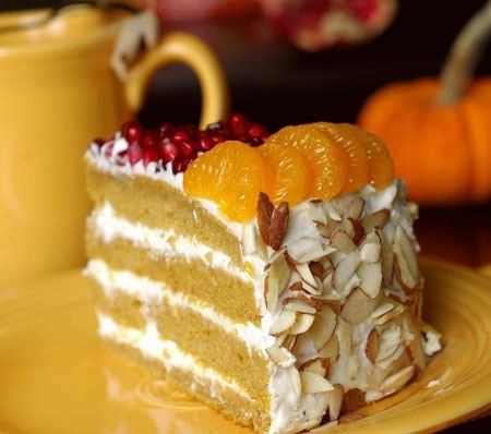 К застывшему крему добавить взбитые сливки и все перемешать. Потом добавить мандарины, и снова перемешать. Полученную массу нанести на поверхность коржа и разровнять. Поставить в холодильник на 3 часа, чтобы торт остыл. По истечению времени вынуть торт из формы, и выложить на его поверхность порезанные кусочки мандарина. Разогреть апельсиновый конфитюр и облить им торт. Сверху посыпать все мюсли.Приятного аппетита!