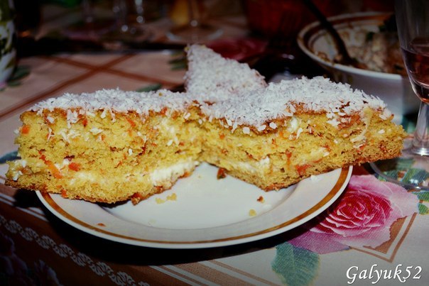 В этот раз решила для крема взбить 250 грамм сметаны 30% и 1 стакан сахара, смешанного с 10 граммами ванильного сахара)) Сверху так же обмазала кремом и посыпала кокосовой стружкой
