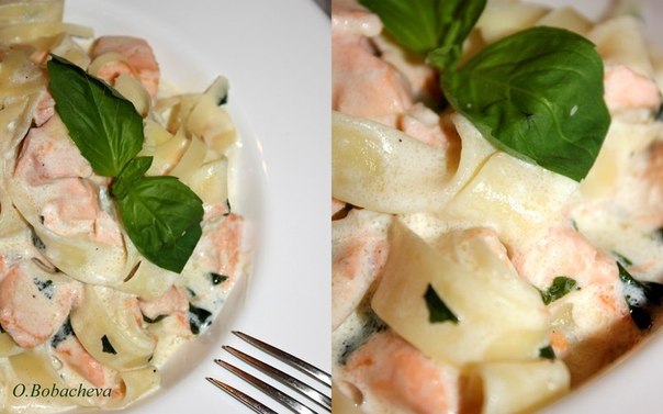 Паста с семгой и базиликом в сливочном соусе