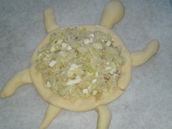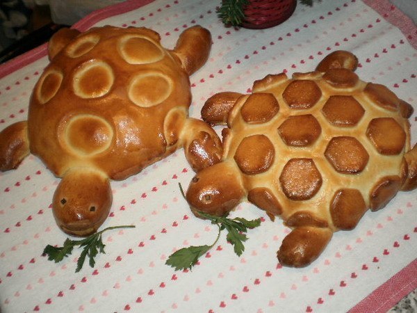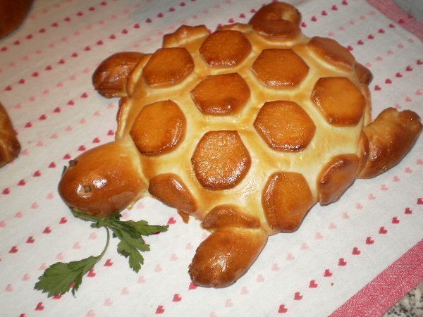 Дать черепахам расстоятся под полотенцем минут 20, смазать яйцом с молоком и выпекать до румяного цвета при 180 градусах.