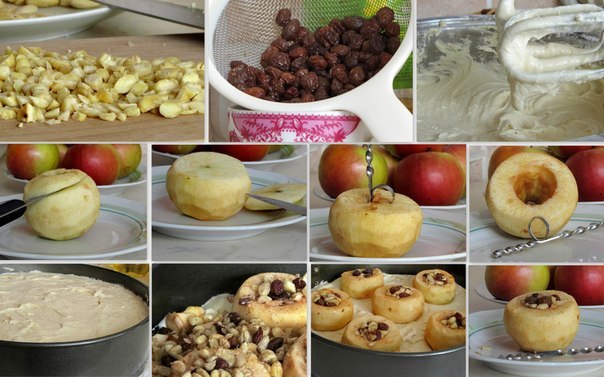 По сути — это красивый высокий пирог с цельными фаршированными яблоками, который можно быстро превратить в достаточно торжественный торт, покрыв взбитыми сливками и украсив молотой корицей.