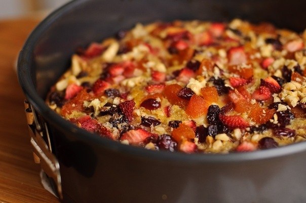 Присыпьте второй половиной орехов. Выпекайте 45 минут — час. Выньте из духовки и можете вынимать из формы через 10-15 минут.