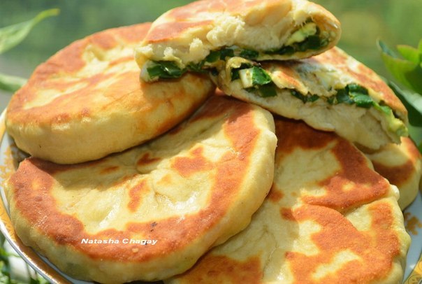 Тесто разделить на кусочки (у меня 8 шт), на каждую положить начинку, защипнуть, приплюснуть. Жарить на масле под крышкой на среднем огне.