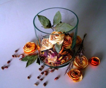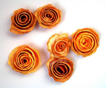 Розами из апельсинов можно украсить ароматную смесь, приготовленную из засушенных цветочных лепестков.