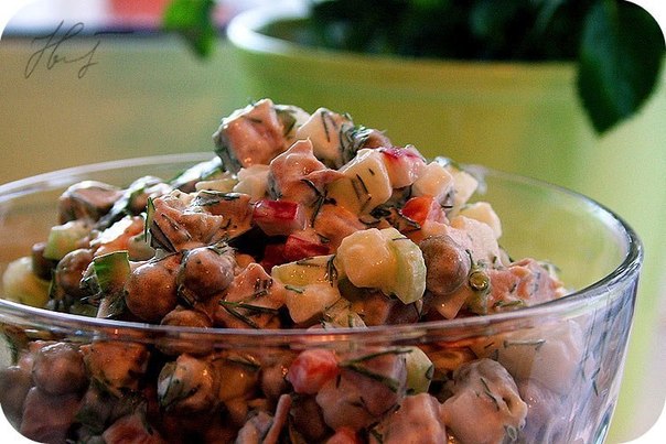 В отличии от классического Оливье салат получается очень легкий и свежий.