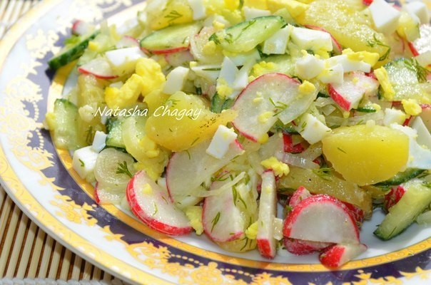 Салат с картофелем и редиской — свежий, легкий, весенний салатик. Заправлять его лучше маслом ароматным, так он будет намного вкуснее. Этот салат можно даже использовать в качестве гарнира к мясу или рыбе, а можно как самостоятельное блюдо. Выбор за вами) Ингредиенты: