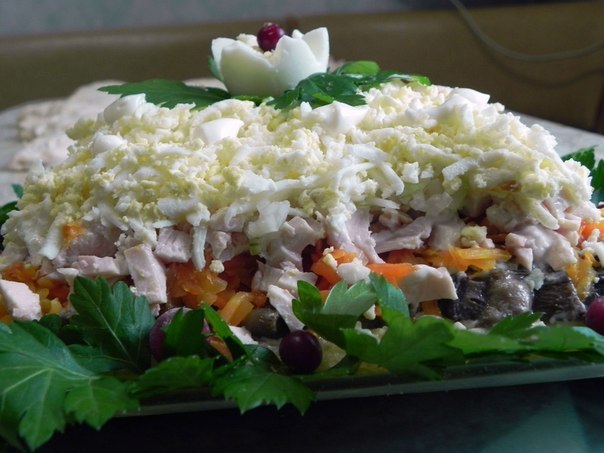 — грудка куриная отварная или копченая — кубиками