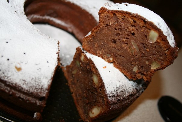 Оставить пирог остывать прямо в форме. Потом выложить на блюдо. Резать ТОЛЬКО полностью остывшим. Можно покрыть глазурью или посыпать сахарной пудрой. Украсить по желанию. e
