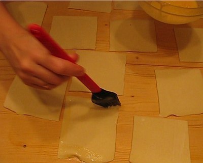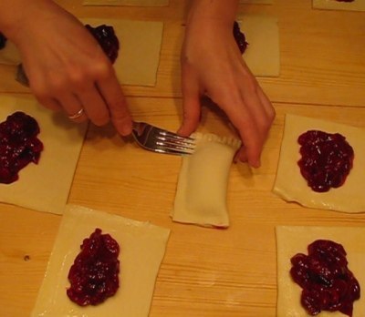 Разложите начинку. Скрепите края слоечек.