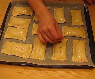 Для более плотного сцепления теста, прижмите тесто по краям вилочкой.