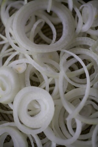 2. Нарезаем отварное мясо, ветчину, колбасу и сосиски тонкими ломтиками. Соленые огурцы нарезать наискосок в виде ромбиков или тонких полосок. Нашинковать кольцами репчатый лук.