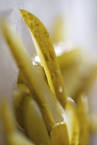 4. Затем огурцы и лук – также ждем, когда закипит, убавляем огонь и даем повариться около десяти минут. Добавляем лавровый лист, потом оливки