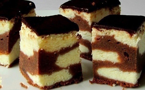 На дно формы ввести 1/3 часть теста, на него чайной ложкой наносить творожную начинку «кляксами», залить частью шоколадного теста, снова начинку и т.д.