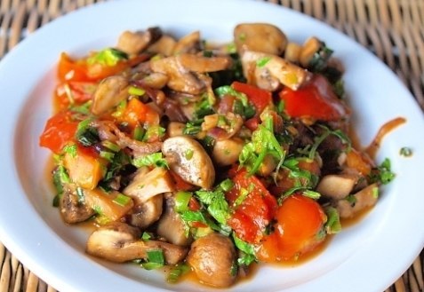 Способ приготовления теплого грибного салата с помидорами