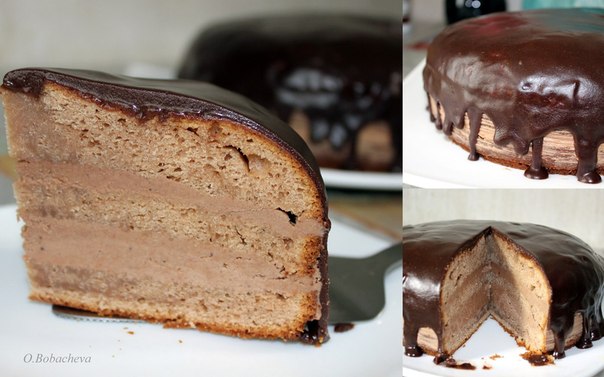 (По желанию верх торта можно промазать абрикосовым джемом, а потом полить глазурью, я не добавляю)