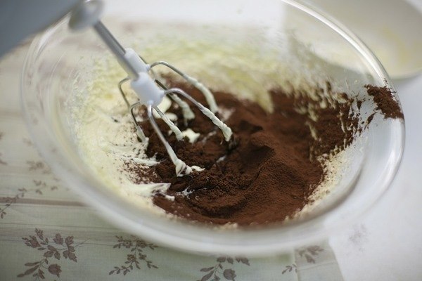 Уваренный сироп охлаждаем и добавляем в предварительно взбитое с ванильным сахаром масло. Добавлять надо понемногу, каждый раз взбивая. В конце взбивания добавить какао.