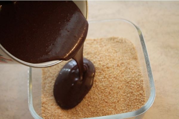 Теперь смешиваем сухарную крошку и шоколадный крем.