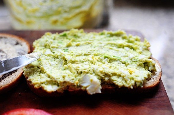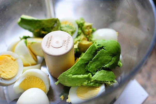Авокадо очистите от кожи и выньте косточку из сердцевины. Разрежьте на мелкие кусочки и закиньте в миксер к яйцам. Чем мягче авокадо, тем лучше.