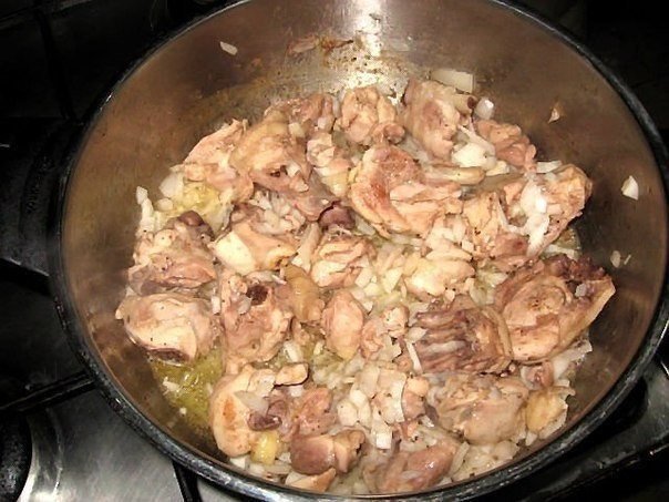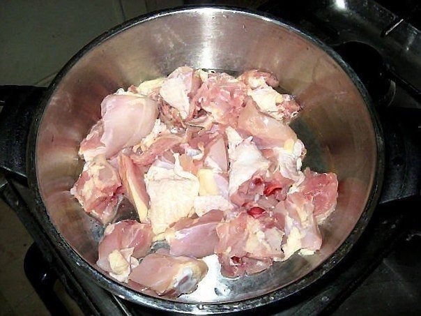 Курицу порезать средне (у меня было 2 окорочка)